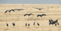 올해도 겨울의 진객 천연기념물 제 228호인 흑두루미 가족이 낙동강과 감천이 합류하는 지점의 모래톱에 내려앉아 먹이를 찾고 있다. 휴식을 취한 뒤 최대 월동지인 일본의 아즈미시로 이동할 것으로 보인다.