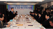 경북도는 13일 여의도 국회의사당 인근 식당에서 한나라당 경북도당과 긴급 당정간담회를 갖고 구제역 등 당면 현안해결을 위한 긴급 모임을 가졌다. 간담회에서 한나라당 측에서는 이인기 경북도당 위원장과 지역 국회의원, 경북도당 간부 등 15명이 참석했고,경북도에서는 김관용 도지사를 비롯 행정, 정무 부지사, 실국장 등 간부공무원 10여명, 정부 측에서는..