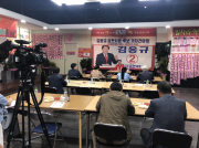 자유한국당 김천시장 김응규 후보가 25일 오전 10시 30분 선거사무소에서 기자 간담회를 가졌다. 김 후보는 불법선거와 관련해 “현재 네거티브 선거와 공무원의 불법 선거가 도를 지나치고 있다”고 지적했다. “퇴직공무원 일동이라는 불분명한 단체가 김충섭 후보를 지지선언 했고 모 면장이 김충섭 후보자를 따라다니면서 자신이 다 책임지겠다는 이야기 했..