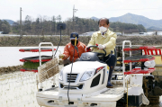 상주시 모서면(면장 서정대)의 쌀 전업농가인 서종화씨가 23일 도안리 11,000㎡의 논에 첫 모내기를 실시했다...