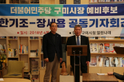 더불어민주당 한기조 구미시장 예비후보가 9일 오전 11시 구미시청 4층 열린나래 북카페에서 기자회견을 갖고 장세용 예비후보를 지지선언하며 후보직 사퇴를 선언했다. 이날 기자회견은 당초 한기조장세용 예비후보와 정책 협의를 위해 한 자리로 마련됐지만 한 예비후보가 돌연 사퇴입장을 ..
