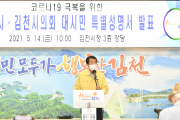 이우청 김천시의회 의장이 14일 오전 10시, 김천시청 3층 강당에서 코로나19 관련 특별성명서를 발표했다. 최근 김천시에서 확진자수가 급증하여 n차 감염의 위험이 커지는 일촉즉발의 상황이 유지되고 있어 5월 15일 0시부터 5월 23일 24시까지 9일간 사회적 거리두기가 2단계로 상향됨에 따라 시민들을 격려하고 ....