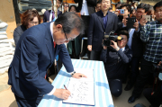 <포토>홍준표 자유한국당 대선 후보 방명록에 '대란대치(大亂大治)'