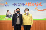 김충섭 김천시장이 4일, 김천시를 방문한 구헌상 부산지방국토관리청장과 면담을 갖고 지연 현안에 대한 다양한 의견을 나눴다. 부산지방국토관리청에서 시행중인 옥률~대룡간 국도대체 우회도로 개설사업의 현장 점검과 정부 핵심과제인 교통사고 줄이기의 자체단체 협조를 유도하기 위해 김천시를 방문한 구헌상 청....