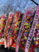 24일 구미시청 앞에는 '이승환 콘서트 최소'를 환영하는 화환 50여개가 세워져있다.  ....