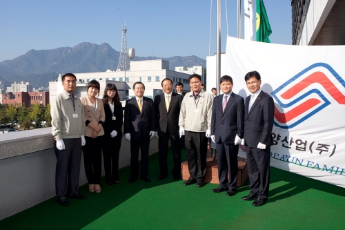 구미시가 2011년 10월 이달의 기업으로 동양산업(주)를 선정하고 4일 시청 국기게양대 앞에서 남유진 시장 , 박용해 대표이사, 권익기 전무, 손종술 전무, 이광진 기장 등 20여명이 참석한 가운데 사기 게양식을 가졌다.