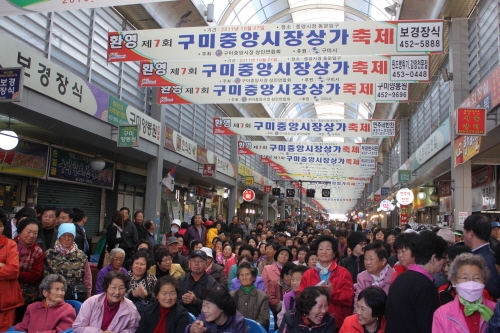 대형마트에 맞서 구미시민들의 장바구니 물가 안정을 위해 외로운 투쟁을 하고 있는 구미 중앙시장 상인연합회 회원들이 제7회 축제를 열었다.