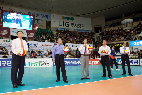 경기 전 개막축하 핸드프린팅, ‘10~11시즌 하이라이트 영상 상영, 개식사, 개막선언, 시구 등 공식 행사가 분위기를 북돋았으며 구미시와 LIG손해보험 배구단은 ‘희망과 나눔’이라는 컨셉으로 다양한 이벤트행사를 준비해 지역 주민들의 참여를 유도하고 관람객들에게 흥미를 제공했다.