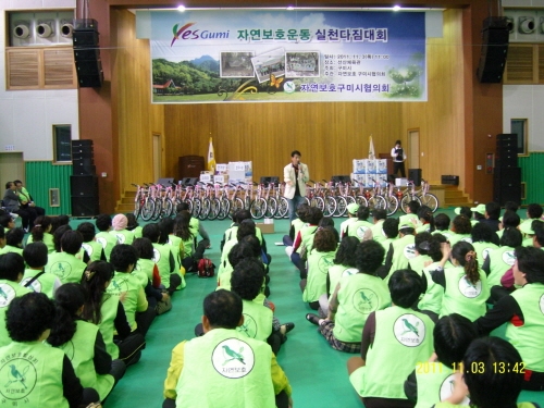 자연환경보전의 중요성을 인식하고 시대 변화에 맞는 새로운 모습으로 지역사회 발전을 모색하기 위한 구미시 2011 자연보호운동 실천다짐대회가 3일 선산체육관에사 열렸다.