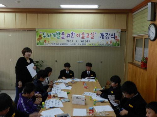 구미중학교(교장 정덕관)가 2일 ‘두뇌개발을 위한 미술교실’을 개강했다.
