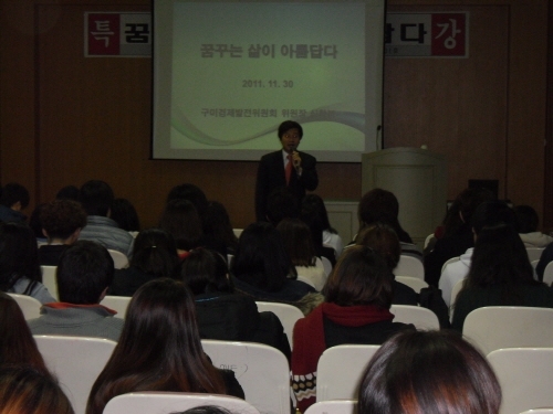 30일 경운대학교의 초청으로 이루어진 이번 강연은 <꿈꾸는 삶이 아름답다>라는 제목으로 심 전 국장은 참석한 500여명의 학생들에게 더 큰 꿈을 가지고 미래를 위해 준비하는 자세를 강조했다.