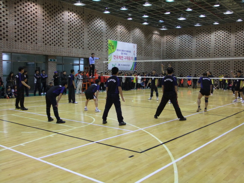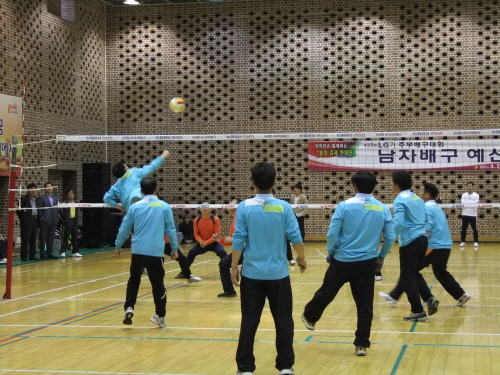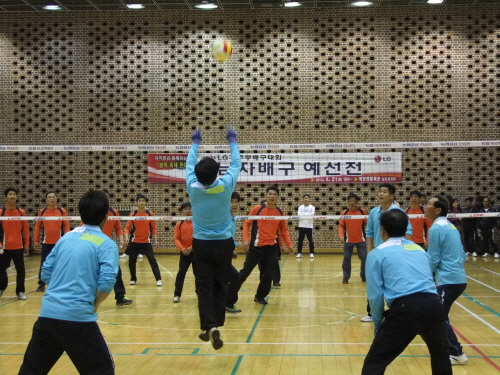 LG기 주부배구대회 남자부 리그 예선전이 21일, 구미 박정희 체육관 지하경기장에서 열렸다.