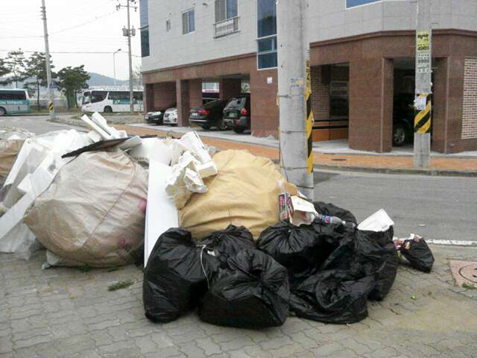 또 옥계동 일부 신축 원룸 주변의 경우에도 신축 중에 있는 건축물과 분양 중인 원룸에서 쏟아져 나온 각종 쓰레기가 주변 도로변을 널부러지면서 양포동 사무소가 이를 정리하는데 애를 먹고 있으나, 무단투기가 지속되면서 환경정리에 큰 어려움을 겪고 있다.