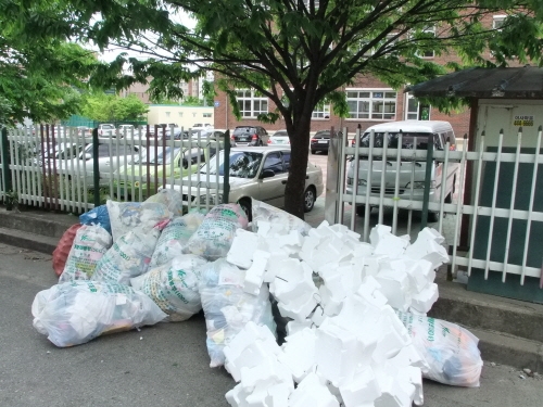 S초의 후문에는 도저히 사람이 지나갈 수 없을 정도의 쓰레기 더미로 채워져있었으며, 폐 발포 스타이렌 수지(스티로폼)도 함께 지저분하게 쌓여 있었지만 관리인도 학교 관계자도 전혀 찾아 볼 수 없었다.