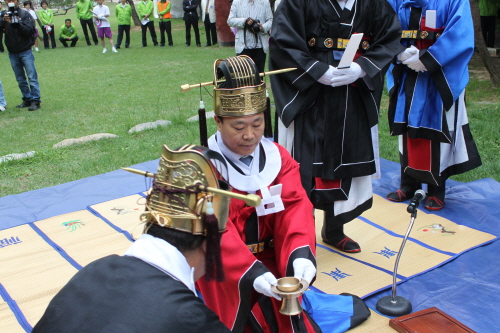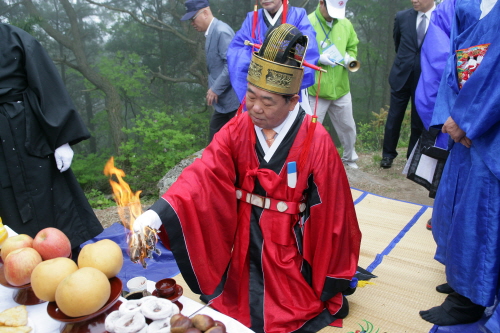남유진 구미시장, 허복 구미시의회 의장, 각급 기관단체장, 시민 등이 참석한 금오산 채화식은 남유진 구미시장이 초헌관으로 천제봉행을 갖고 칠선녀들의 성무에 이어 채화경을 통해 성화봉에 채화됐다.