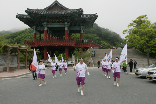 ▶금오산에서 채화된 성화의 첫번째 주자로 나선 구미시의회 의원들 |
