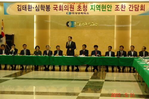 5월 30일 19대 국회의원 임기가 본격 시작된 가운데 구미상공회의소(회장 김용창)가 지역현안 논의를 위해 김태환, 심학봉 국회의원 초청 조찬 간담회 자리를 마련했다.