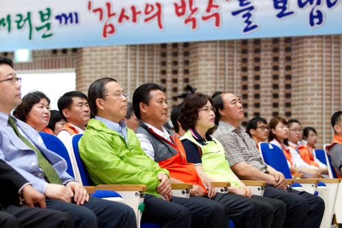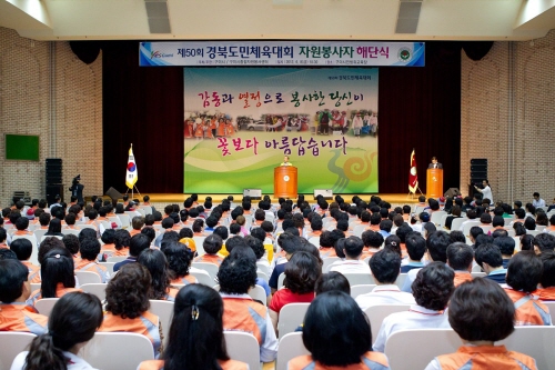 구미시와 구미시종합자원봉사센터(소장 김봉재)가 공동 주관한 해단식은 도민체전 역대 최대 대규모인 1,500여명의 자원봉사자들에 대한 인증서 수여와 자원봉사활동 우수사례 발표, 위로공연 등으로 뜨거운 열정을 보여준 자원봉사자들의 노고를 위로했다.
