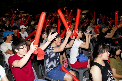 8일 새벽 2012 런던올림픽 축구 4강을 염원하는 구미시민들이 금오산 주차장에 모여 2012 런던올림픽 축구(4강) 시민응원 한마당을 펼쳤다.