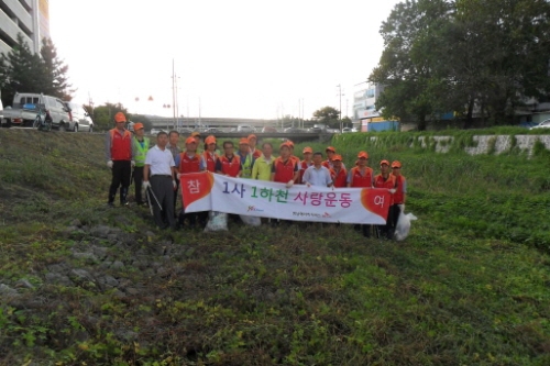 1사1하천 사랑운동의 일환으로 실시한 환경정비 활동을 통해 참가자들은 강바닥에 무성하게 자란 잡초를 제거하고 호우로 떠 내려온 부유물을 대량으로 수거 했다.