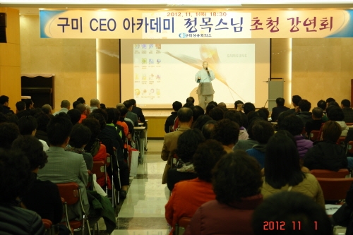 정목스님이 1일 구미CEO 경제아카데미 5주차 과정 강사로 나섰다.