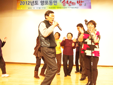 양포동 수요회(회장, 동장 장도익)가 2012년 한해 동안 동 발전과 지역민의 안녕을 위해 최선을 다한 주민들을 위해 마련한 송년의 밤에는 장도익 양포동장, 김병식 통장협의회 회장 등 각 자생단체장, 양포파출소장, 임무식 인동농협 조합장, 김준식 옥계 119 안전센터장, 각 자생단체 남녀 회원등 500여명이 참석, 한해를 돌아보며 행복한 미래를 기약했다.