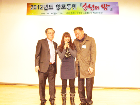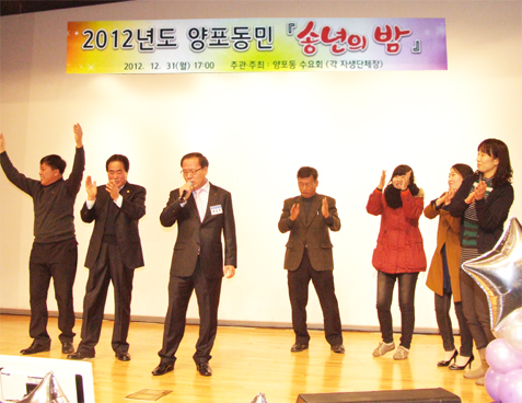 다사다난했던 한해를 슬기롭게 극복한 동민들의 아픔을 위로, 격려하고 이를 통해 계사년 한해를 힘차게 맞기 위한 2012년 양포동민 송년의 밤 행사가 지난 12월 31일 4공단 내 구미코 3층 대회의실에서 열렸다.