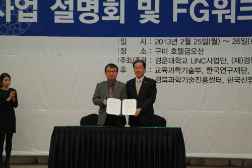 협약식에는 한국산업단지공단이 지식경제부 정책사업으로 운영하는 구미단지 기업주치의센터의 전문 컨설팅 지원 역량을 바탕으로 산학협력 활동을 통해 지역산업 발전을 강화하는 신산학협력 체제 구축을 위해 경운대학교 산학협력 선도대학사업단과 상호 협력하는 내용을 담고 있다.
