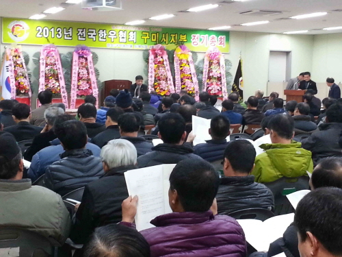 전국한우협회 구미시지부(지부장 이인철) 2013년 정기총회가 26일 구미농산물도매시장 회의실에서 개최됐다.
