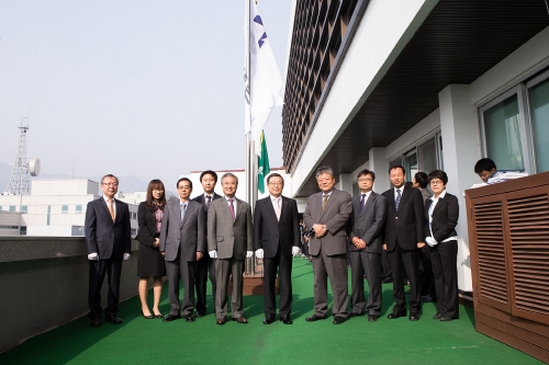 1일 오전9시 시청 국기게양대 앞에서 열린 사기게양식에는 남유진 구미시장, 심재설 LS엠트론 대표이사 등 30여명이 참석했다.