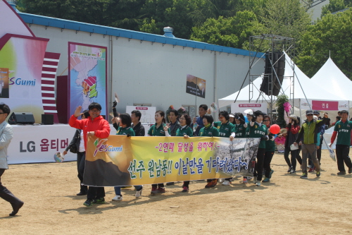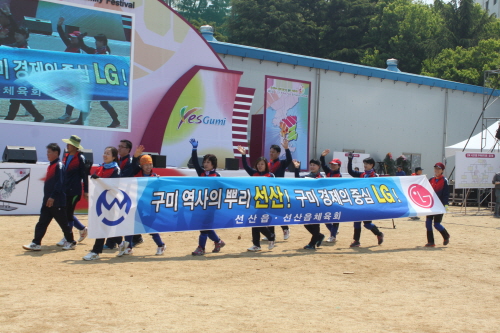 입장퍼레이드로 지역 전 계층 및 연령을 총망라한 단체들이 참여했다. 50사단 군악대 및 경상북도립 취타대,구미시 여성단체협의회,금오여고,구미시 줌마클럽,꿈을 이루는 사람들,차인 연합회,구미대학 무술시범등 다양한 볼거리를 제공했다. 특히 야은예절교육원에서는 구미시와 LG의 전통혼례 가마행렬 퍼포먼스를 통해 구미와 LG가 한가족임을 선언했다.