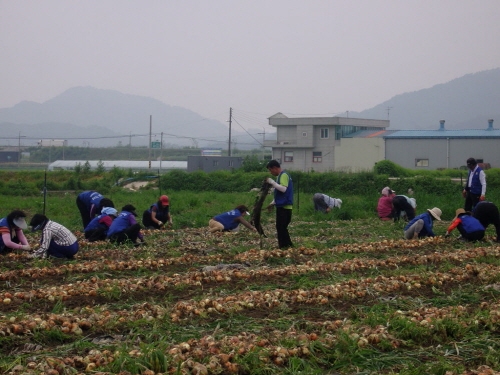 참가자들은 양파밭 1천600여평에 심어져 있는 양파줄기 제거, 비닐걷기, 양파뽑기를 도왔고, 감자밭 400여평에서는 감자캐기 작업을 도왔다.