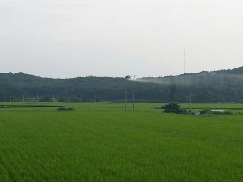 구미시가 헬기를 이용한 벼 병해충 항공방제를 8월 1일부터 8월 6일까지 선산읍을 비롯한 6개읍·면 4천300ha를 대상으로 실시한다.