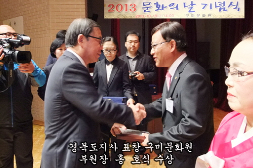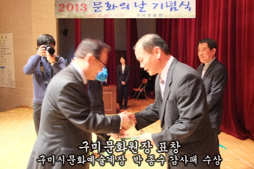 홍호식 구미문화원 부원장의 경북도지사 표창, 박종수 구미시 문화예술계장이 표창과 감사패를 수여한 이날 기념식은 박은호 구미문화원장의 기념사와 남유진 시장의 격려사, 임춘구 의장의 축사 순으로 진행됐다.