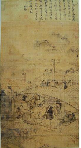 봄날 새벽의 과거시험장, 수많은 사람들이 과거 치르는 열기가 무르익어, 어떤 이는 붓을 멈추고 골똘히 생각하며, 어떤 이는 책을 펴서 살펴보며, 어떤 이는 종이를 펼쳐 붓을 휘두르니, 어떤 이는 서로 만나 짝하여 얘기하며, 어떤 이는 행담에 기대어 피곤하여 졸고 있는데, 등촉은 휘황하고 사람들은 왁자지껄하다.
