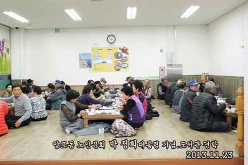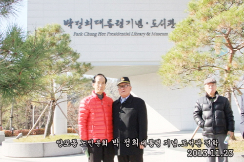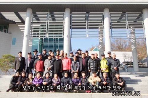 이날 오전 8시 구포전원 아파트 입구에서 대형버스에 탑승한 7-80대 경로당 회장단은 오전 11시경 서울 마포구 월드컵 368번지 (상암동)에 있는 박정희 대통령 기념▪도서관에 도착, 박정희 대통령 존영과 박정희 대통령의 경제 발전 상황과 관련된 자료가 전시된 제1전시실과 근대화의 과정을 따라가는 시간여행 자료가 있는 제2 전시실, 인간 박정희와의 만남을 통해 육영수 여사의 활동 모습과 유품등이 전시된 제3전시실을 둘러보았다.