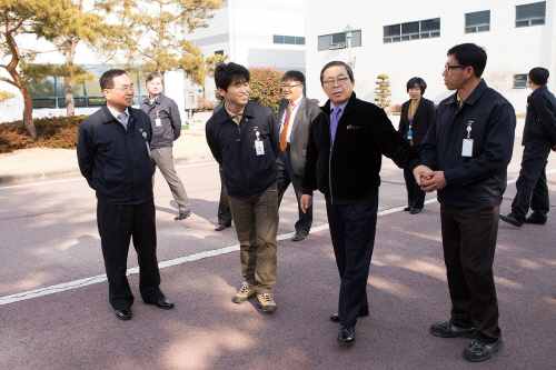 남 시장은 28일 점심시간을 이용해 1공단에 위치한 LIG넥스원을 방문, 원종도 노조위원장(한국노총 구미지부 의장)의 안내로 생산현장을 둘러보고, 회사 구내식당에서 근로자와 함께 점심식사를 하며 이야기하는 시간을 가졌다.