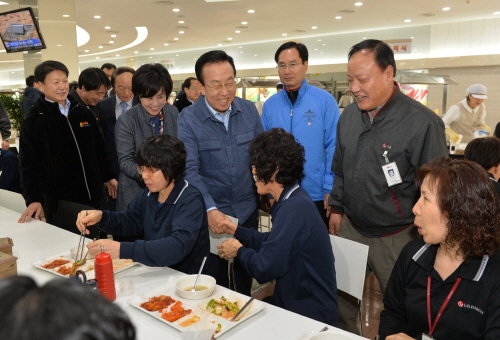 점심시간에는 구미3공단 내 LG디스플레이 제1공장 구내식당에서 근로자들과 점심을 함께 한 후 석호진 노조위원장 등 노조임원들을 만나 노사화합을 통한 상생발전으로 국가경제와 지역발전에 힘을 보태 줄 것을 당부했다.