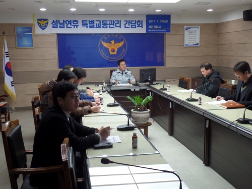 김천경찰서(서장 정은식)는 24일 경찰서 열린방에서 김천시청, 농협하나로마트, 이마트 등 교통관계 대표자가 참석한 가운데 재래시장, 대형마트, 직지교사거리 등 시내 정체예상 5개 구간에 대한 기관별 교통소통대책을 발표했다.