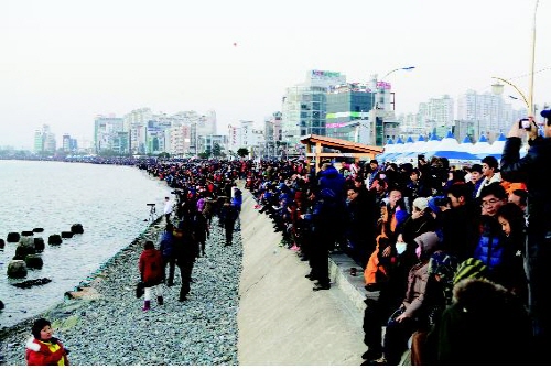 | ▶10만 해맞이 인파가 몰린 영일대 해수욕장 |