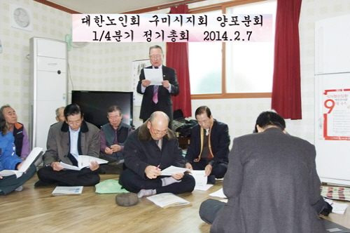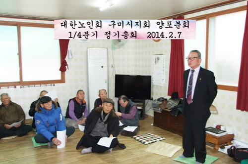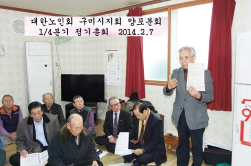 구미시 양포 노인회 분회 1/4 결산 총회가 7일 양포 경로당에서 열렸다.