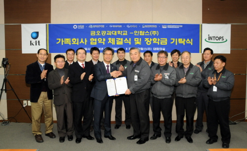 금오공대 산학협력선도대학(LINC)육성사업단(단장 채석)은 10일 인탑스(주) 구미공장에서 산학협력을 위한 가족회사 협약식 및 장학금 전달식을 가졌다.