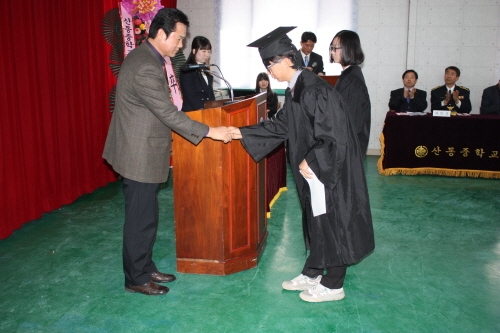 경북도 구미소방서 산동의용소방대(대장 김춘학)는 11일 산동중학교 졸업식에서 모범 졸업생 2명에게 장학증서와 장학금 20만원을 각각 수여했다