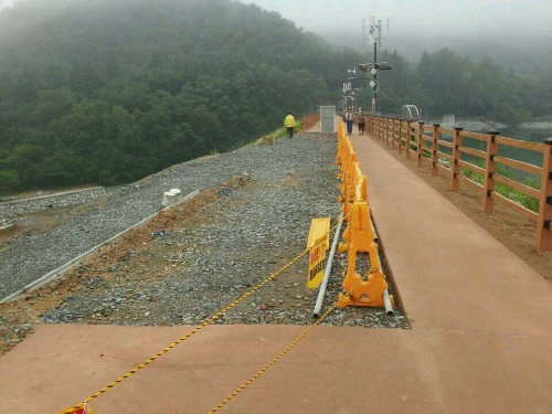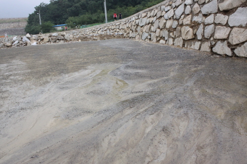하지만 이날 오후 8시 30분부터 쏟아진 집중 호우 때문에 곳곳에 자갈이 드러날 만큼 콘크리트가 휩쓸려 내려갔다.