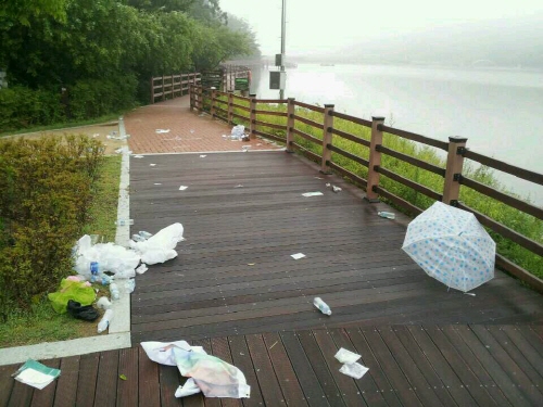 하지만 2일, 아침 음악회를 마친 현장에는 각종 쓰레기가 널부러져 있었다. 뒷정리를 하지 않은 주최측의 무책임도 문제지만, 청정지역이면서 시민이 즐겨 찾는 편의시설 공간에 쓰레기를 버린 시민의식의 현주소가 한심스럽다