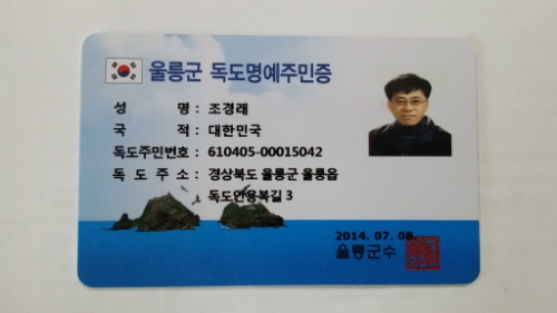 “울릉군 독도명예주민증” 얼마나 자랑스럽고 또한 사명감이 감도는지 내 자신을 다시 한 번 채찍질 해본다. 우리 모든 청소년들에게 독도는 반드시 지켜야 할 우리 땅이라고...