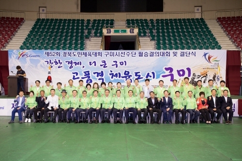 구미시체육회장인 남유진 시장을 비롯해 기관단체장, 도·시의원, 서포터즈, 학교장, 체육회 임원 및 선수 500여명이 참석한 가운데 시는 지난 8월 6일 도민체전 종목별 대진추첨을 마치고 올해는 지난 김천 제51회 도민체전의 부진한 성적을 뛰어넘어 종합우승 탈환을 다짐하며 필승결의를 다지는 시간을 가졌다.