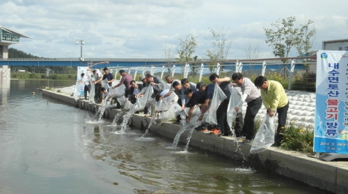 구미시(시장 남유진)는 지난 28일 낙동강 구미보에서 내수면 어족자원 증대와 시민 유어환경 개선을 위하여 관계공무원, 어업인 등 30여명이 참석한 가운데 붕어 3만 마리, 잉어 2만 마리를 방류했다.