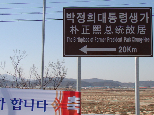 선산읍 낙남루 앞을 비롯한 주요 도로변의 박정희 대통령 생가 안내판의 영문은 <The Birth of Former President Park chung-Hee>로 표기가 잘못됐다는 지적이었다. 생존해 있는 전직 대통령은 < Former President >인 반면 작고한 전직 대통령은 <Late President >가 정확한 표기라는 것이다.