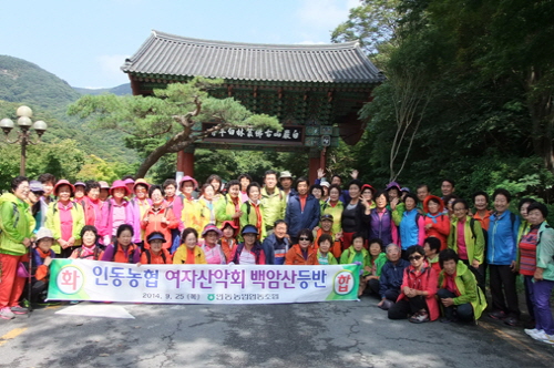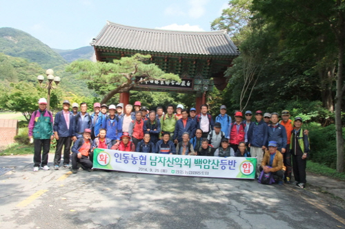 농협 발전에 직간접인 기여를 해 오고 있는 구미시 인동농협(조합장 임무식)남▪여 산악회가 지난 달 25일 전남 장성에 있는 백암산 등산과 함께 유명사찰인 백양사를 탐방했다.